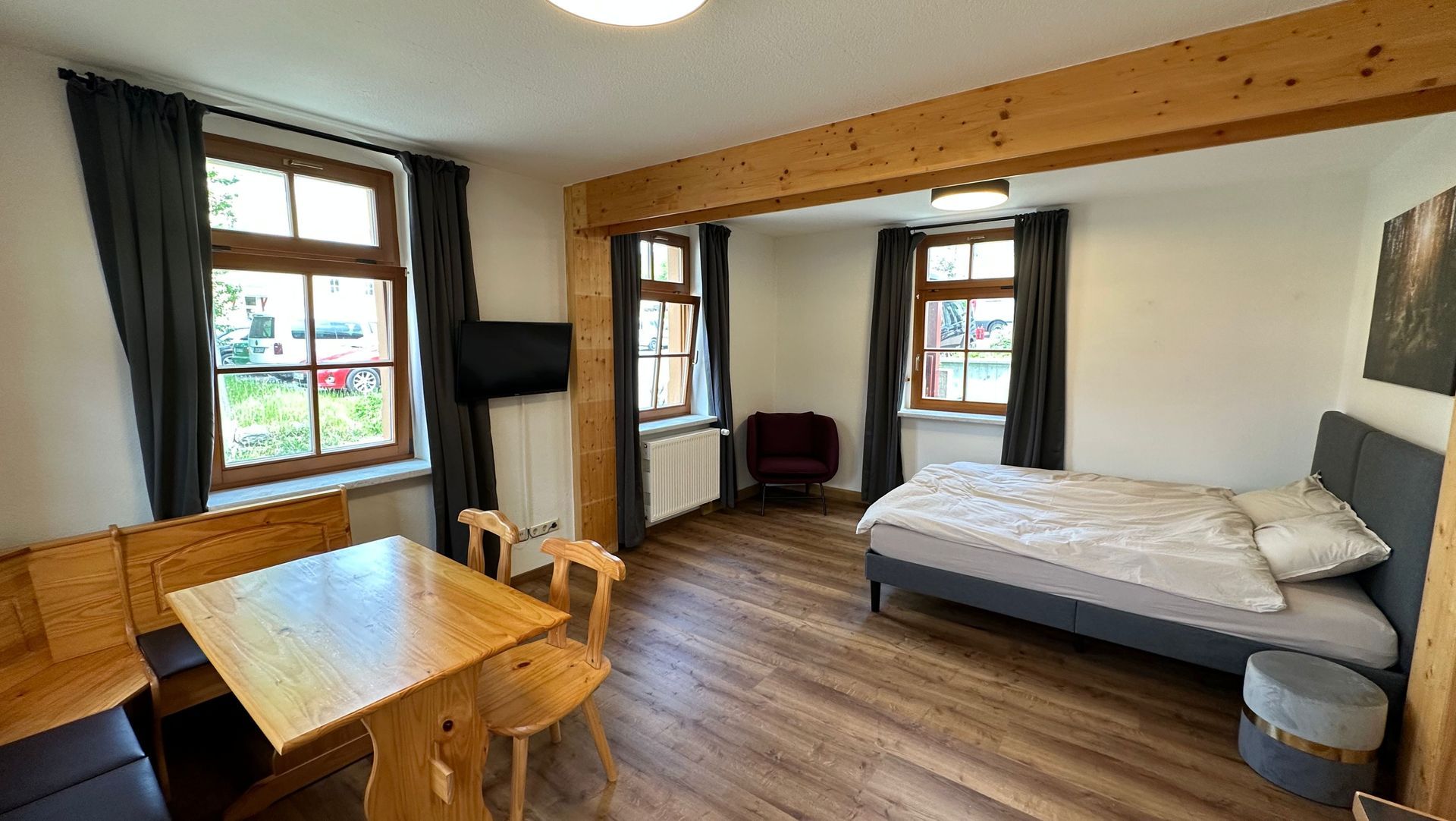 Unser Ferienhaus Kleines Domizil befindet sich direkt im Herzen von Altenberg mit Blick auf den nur 2 Gehminuten entfernten Skihang. Das Ferienhaus ist durch viele Fenster sehr hell, im Inneren modern und mit viel Liebe eingerichtet. Das Ferienhaus verfügt über 2 getrennte Ferienwohnungen, die jedoch auch gerne gemeinsam gebucht werden können. Das große Appartement 1 bietet Platz für bis zu 5 Personen und verfügt mit einer Terrasse und Bergblick über 1 separates Schlafzimmer, ein Wohnzimmer, eine komplett ausgestattete Küche sowie 2 Badezimmer mit einer Badewanne & Dusche.